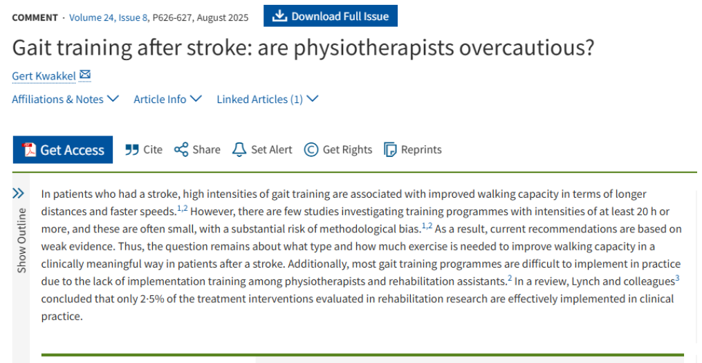 4. The Lancet Neurology | 中风后步态训练:物理治疗师是否过于谨慎?
