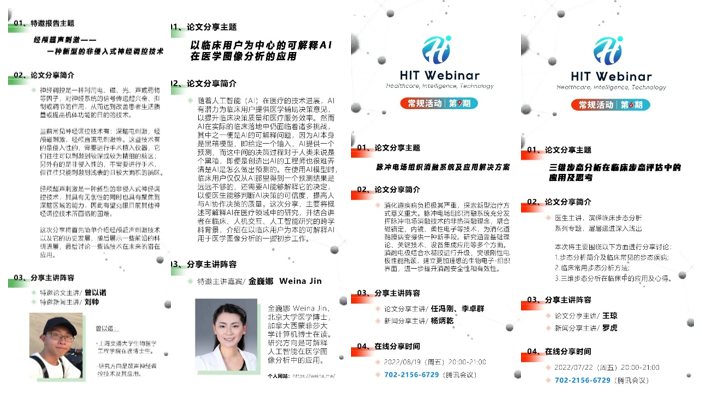 HIT Webinar智慧医疗前沿科技在线研讨会,聚焦人工智能等计算机技术在生物医疗领域的基础和应用研究。邀请海内外该领域的青年优秀人才进行分享。