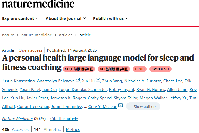 [1] Khasentino, J., Belyaeva, A., Liu, X., et al. (2025). A personal health large language model for sleep and fitness coaching. Nature Medicine.