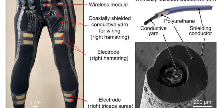 一项来自东京大学和理化学研究所(RIKEN)的新技术,10月15日在《科学进展》(Science Advances)上发表,为这个问题提供了一个优雅且极具潜力的工程解决方案:通过将高保真屏蔽电缆的原理微缩并融入可拉伸的纺织物中,开发了一种基于同轴屏蔽导电纱线的全身肌电监测系统。这项技术的核心,是将传统用于精密仪器的高保真屏蔽电缆,变成了一种可以像普通纱线一样编织、拉伸和穿着的“智能线”。 解决了长期困扰可穿戴生物传感器的“噪声”难题。这项创新可能将精确的人体机能分析,从实验室真正带入运动场、康复中心和我们的日常生活。