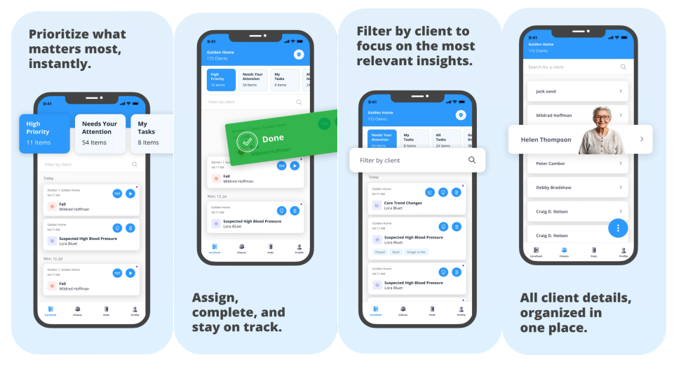 异常事件通过平台推送给照护人员,同时提供每日摘要、趋势报告和行为洞察,辅助调整护理策略。