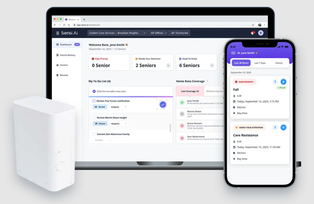 一位认知障碍老人夜间多次跌倒,Sensi 识别夜间起夜、活动偏差等趋势后,照护机构调整护理时间与人员配置,14 个月内未发生住院事件。
