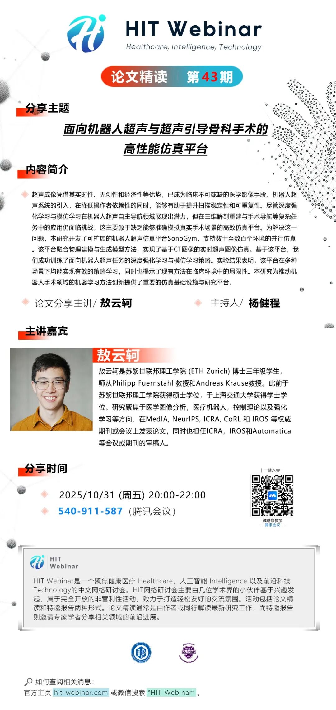 本期特邀报告将于北京时间2025年10月31日晚上20:00于腾讯会议进行,时长2.0小时,欢迎您注册参加。