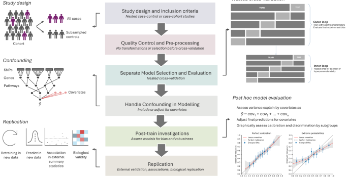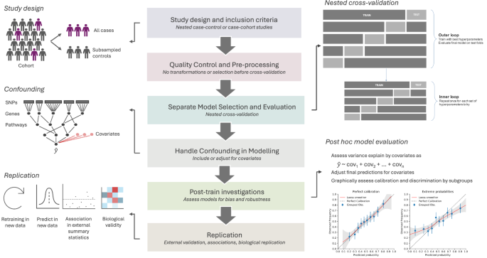 嵌套交叉验证:严格分离模型选择与性能评估流程,防止数据泄露导致的乐观偏差。文献指出,这在遗传学研究中仍应用不足。