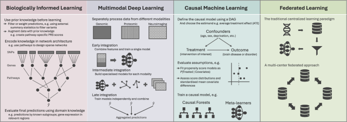 图3:扩展机器学习工具包——通过因果、联合、多模态和生物知情学习,解开脑部疾病的复杂性。