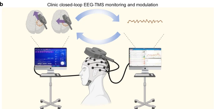 全球每年有数百万人因脑卒中导致上肢运动功能障碍,康复之路漫长且充满挑战。传统物理疗法依赖重复性训练,效果因人而异,且难以精准匹配大脑的动态恢复状态。 近年来,非侵入性脑调控技术如经颅磁刺激(TMS)为康复带来了新希望。它通过磁场无痛地刺激特定脑区,调节神经可塑性。然而,当前的临床TMS疗法存在两大核心瓶颈: 静态与分离:传统TMS治疗参数固定,与治疗时患者实时的脑活动状态完全脱节。诊断(EEG监测)与治疗(TMS干预)是两套独立系统,存在显著的“监测-决策-干预”延迟。 笨重与局限:高精度TMS设备庞大、昂贵,必须由专业人员在医院操作,严重限制了治疗的频率和可及性,难以支撑卒中后所需的长期、持续性康复。 简言之,患者的大脑在动态变化,而治疗却是静态和滞后的;康复需要持续干预,而最有效的工具却被禁锢在诊室之中。