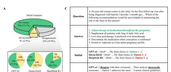 在医学人工智能快速发展的当下,GPT-4、Med-PaLM2等大型语言模型在医学问答与考试中不断刷新纪录,展现出接近人类的认知能力。然而,单一模型固有的“黑箱”局限、缺乏多视角校验的推理机制,已成为其在真实、高风险临床场景中安全落地的关键瓶颈。如何让AI像多学科专家会诊一样,实现交叉质证、协同决策,是医疗AI走向可信、可靠必须跨越的科学鸿沟。 2026年1月5日,中国医学科学院基础医学研究所龙尔平团队与北京大学基础医学院万沛星团队在Cell Reports Medicine期刊在线发表了题为《Model confrontation and collaboration: a debate intelligence framework for enhancing medical reasoning in large language models》的研究论文,提出“模型对抗与协作”(MCC)框架,推动医疗AI从“单点智能”迈向“协同推理”的范式跃迁,通过构建可辩论、可追溯、动态协作的模型圆桌,从根本上促进了医疗AI向可靠、可解释、可协作的下一代形态演进。