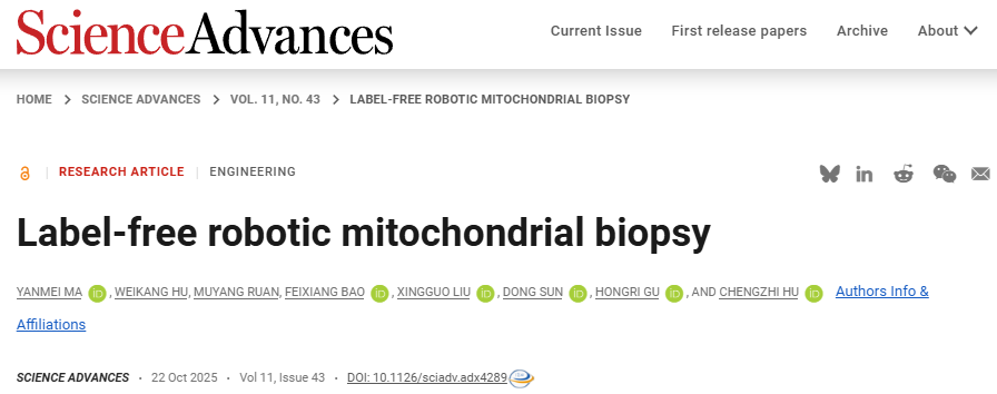 Yanmei Ma et al. ,Label-free robotic mitochondrial biopsy.Sci. Adv.11,eadx4289(2025).DOI:10.1126/sciadv.adx4289