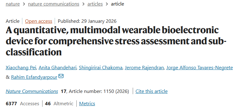 Pei, X., Ghandehari, A., Chakoma, S. et al. A quantitative, multimodal wearable bioelectronic device for comprehensive stress assessment and sub-classification. Nat Commun 17, 1150 (2026). https://doi.org/10.1038/s41467-025-67747-9