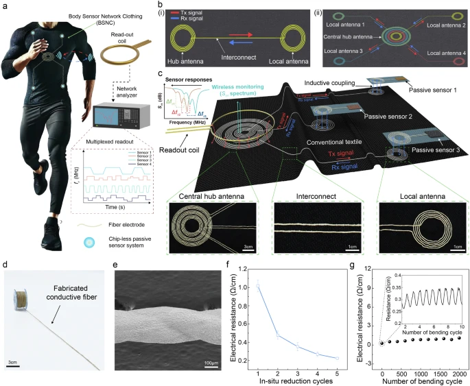 想象一下,一件看似普通的运动裤,它的布料本身就是一套精密的无线监测系统——无需电池供电,没有任何硅基芯片,却能同时、实时地感知你膝关节的弯曲角度和大腿肌肉的拉伸状态。这并非科幻,而是韩国研究团队在《自然》子刊上发表的突破性研究。他们通过一种创新的“同心多中心天线”架构和数字刺绣工艺,首次将完全无源的、基于织物的体域网(tBSN)变为现实,为个性化康复、运动分析和长期健康监测开辟了一条前所未有的技术路径。