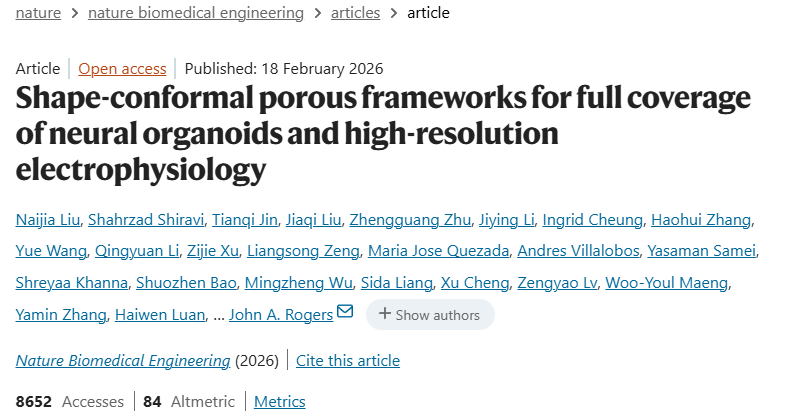 Liu, N., Shiravi, S., Jin, T. et al. Shape-conformal porous frameworks for full coverage of neural organoids and high-resolution electrophysiology. Nat. Biomed. Eng (2026). https://doi.org/10.1038/s41551-026-01620-y