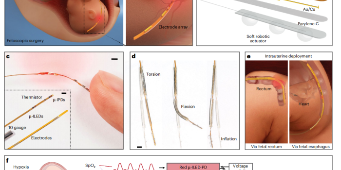为攻克这一难题,西北大学(Northwestern University)约翰·罗杰斯(John A. Rogers)教授领导的跨学科团队与芝加哥卢里儿童医院(Lurie Children’s Hospital)的艾门·沙班(Aimen F. Shaaban)博士近期在《自然-生物医学工程》(Nature Biomedical Engineering)上发表了一项里程碑式研究“A filamentary soft robotic probe for multimodal in utero monitoring of fetal health”(用于胎儿健康多模式宫内监测的丝状软体机器人探针)。该研究设计并开发了一种丝状软体机器人探针(SRFP),通过融合微型化生物电子传感技术与软体机器人驱动技术,首次将“ICU 级别的连续监护”引入子宫内部,为精准胎儿医学补上了缺失的实时反馈环路。