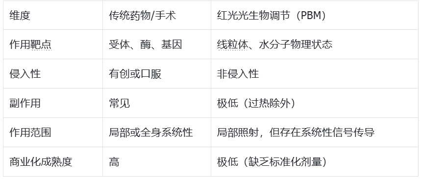 红光疗法正处于一个微妙的转折点:一方面,扎实的科学正在揭示光与线粒体之间深刻的物理交互;另一方面,商业炒作和监管真空可能反噬这一领域的公信力。对于投资者和从业者而言,真正的机会不在于追随消费热潮,而在于推动剂量标准化、机制研究和临床证据的积累——这才是从“边缘”走向“主流”的唯一路径。