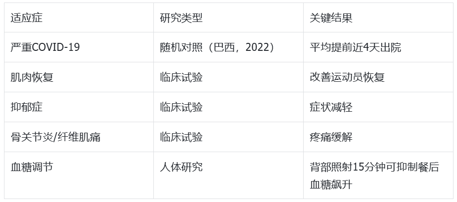 – 2025年共识综述(含20余位专家):确认红光疗法对溃疡、周围神经病变、急性放射性皮炎、雄激素性脱发安全有效。