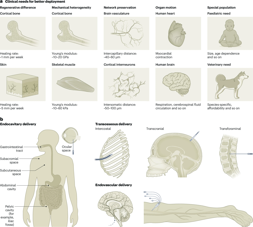 图 1 | 微创生物电子设备部署系统的临床需求。