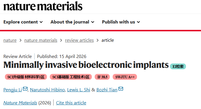 [1]Li, P., Hibino, N., Shi, L.L. et al. Minimally invasive bioelectronic implants. Nat. Mater. (2026).