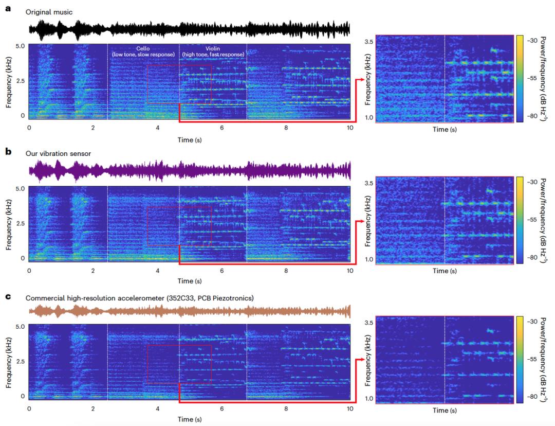 上图展示了传感器在捕捉人类语音和颈动脉脉搏信号时的卓越表现,其精确度足以与医疗级设备媲美。